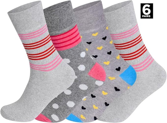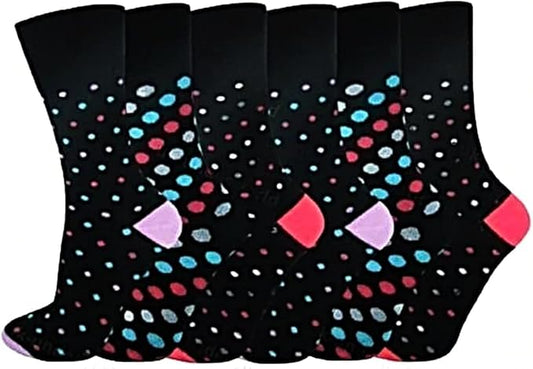 ARG 6 PAIRS WOMENS NON ELASTIC POLKA DOTTED DIABETIC SOCKS LADIES EASY GRIP LOOSE SOFT TOP COTTON SOCK FOR SWOLLEN FEED ODEMA FRIENDLY UK 4-8