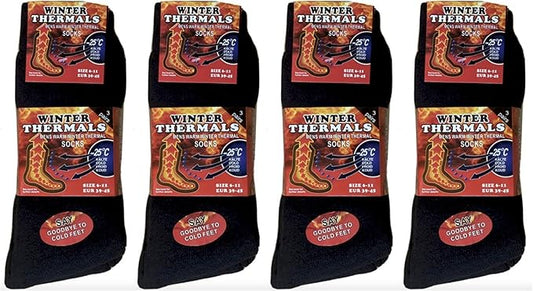 6 Pairs Men's Black Thermal Socks Winter Outdoor Walking Exercising Hiking Soft Heavy Duty Uk 6-11 EU 39-42