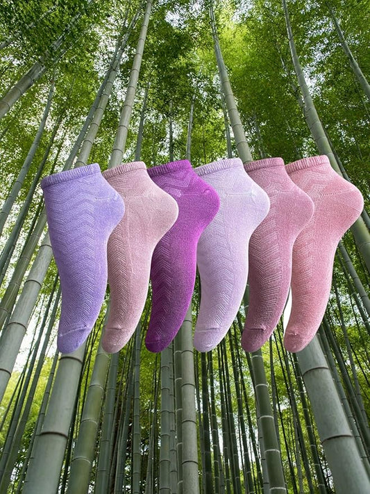 6 Pairs Bamboo Ankle Socks, Women's Trainer Socks, Low Cut, Breathable, UK 4-7