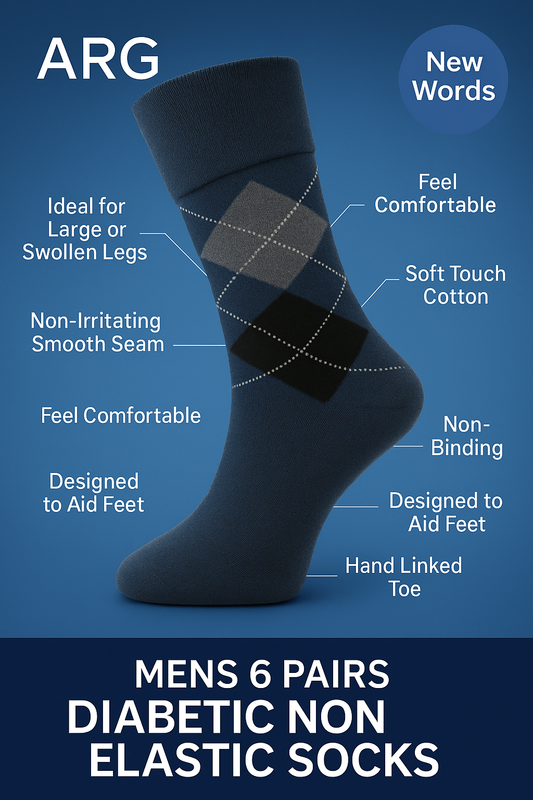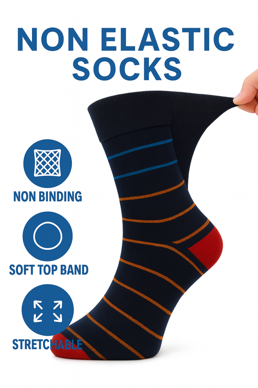 6 Pairs Non Elastic Diabetic Mens Socks Easy Grip Loose Soft Top Rich Cotton Sock Smooth Toe Seem Non Elastic Cuff 6-11 one size UK Heel And Toe