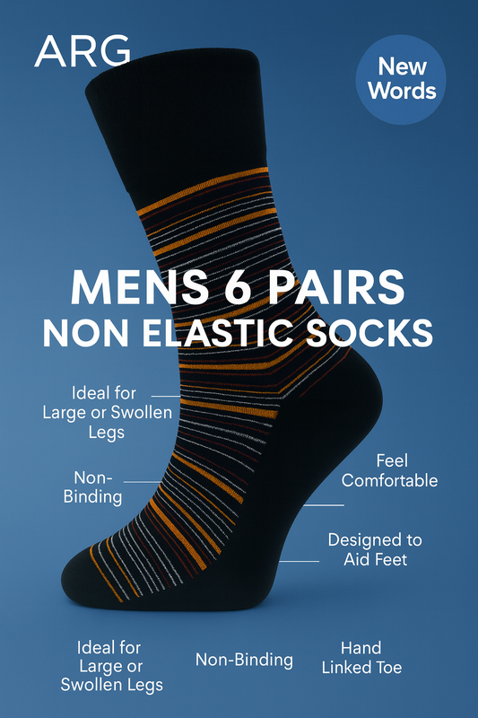 6 Pairs Non Elastic Diabetic Mens Socks Easy Grip Loose Soft Top Rich Cotton Sock Smooth Toe Seem Non Elastic Cuff 6-11 one size UK