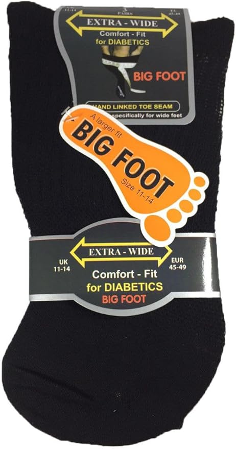 3 Pairs Mens Extra Wide Big Foot Comfort Fit Diabetic Socks For Wide Feet UK 11-14 (EU 45-49)
